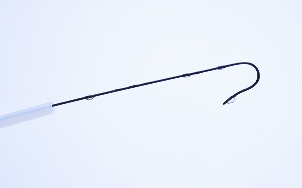 従ってスワンワイヤーは、手技中の合併症を軽減することができ、術者は集中してカテーテル手技を行うことができます。また、形状部が大きく成形されているため、カテーテルへの挿入性も向上しており、スムーズなカテーテル交換をサポートします。