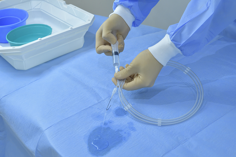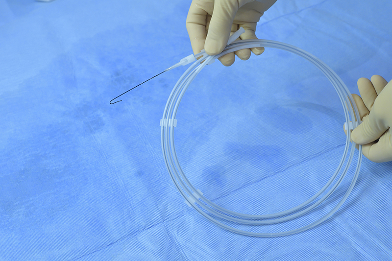 Coat the Swan Excel Guide Wire with approximately 10cc Saline Water until The Swan Excel Guide Wire becomes slightly slick.